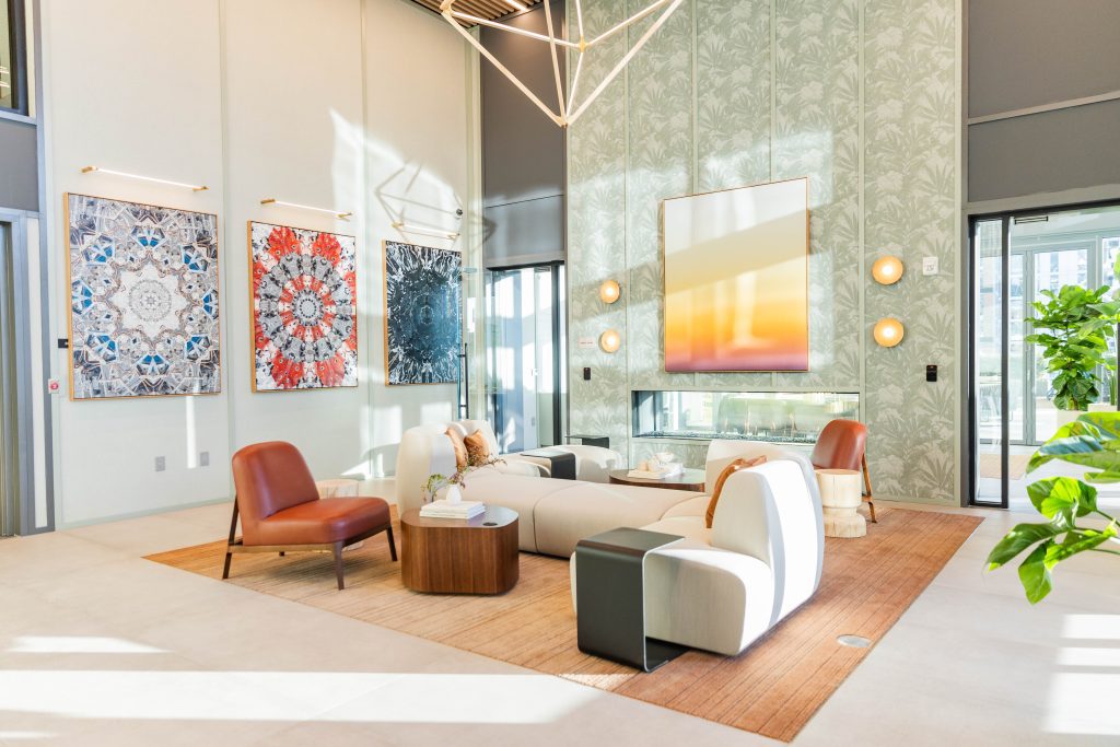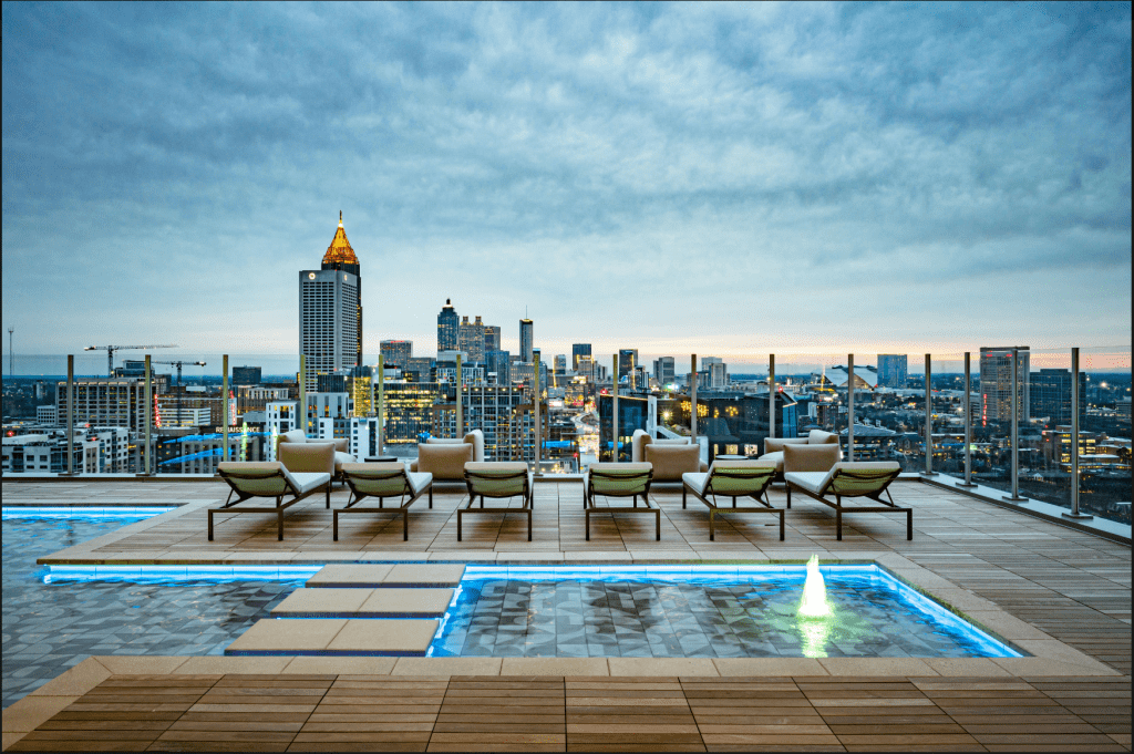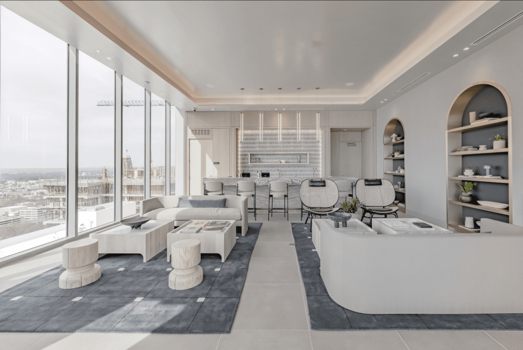 Located within the Spring Quarter mixed-use community, Sora is anchored by the historic H.M Patterson Home and Gardens, connecting 370 luxury units with lush gardens and incredible street-level retail and restaurants. The tower features top-of-the-line resident amenities, including fitness rooms, indoor and outdoor lounge spaces, co-working offices, and an outdoor pool and terrace.
