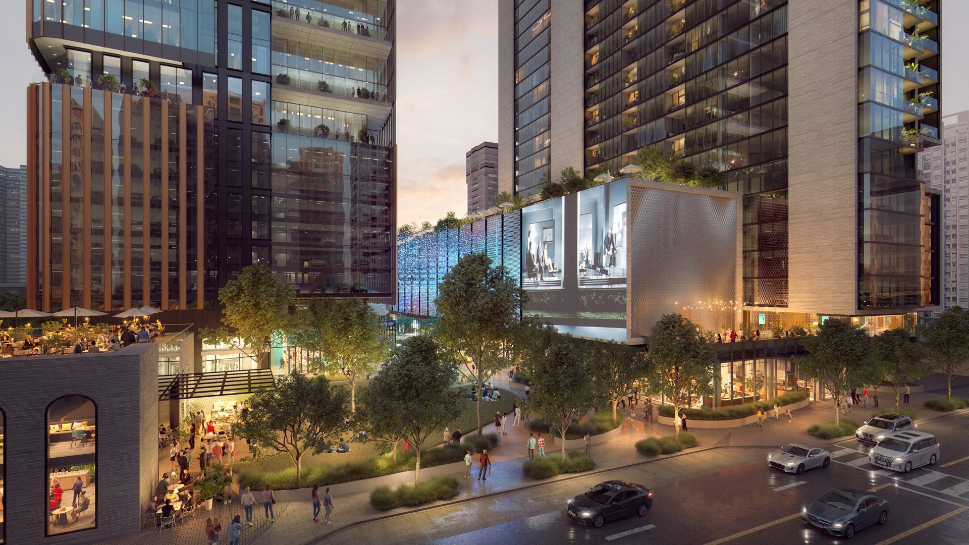 This three-tower mixed-use development will feature 900 luxury residential units, 50,000 square feet of retail and 400,000 square feet of office space around a new public plaza.