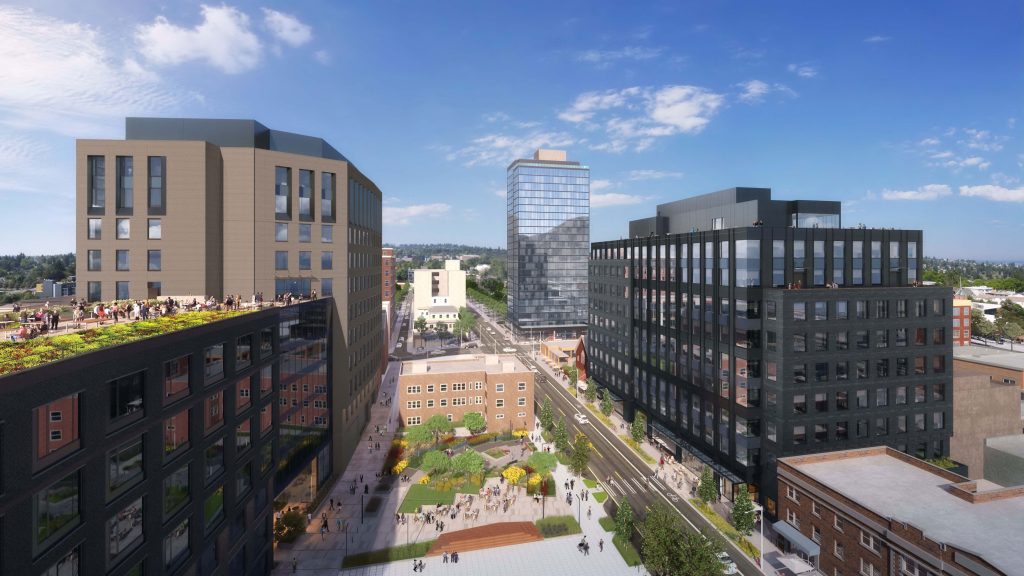 The Chapter Buildings are designed with sustainability and wellness in mind, targeting LEED Gold and Fitwel certifications. Strategically positioned adjacent to the University of Washington ecosystem, the Light Rail transit system, and I-5, the development offers seamless access to the region’s talent and transportation network. With its thoughtful integration of greenspace, retail, and flexible work environments, the Chapter Buildings provide an inspiring, healthy, and connected workplace experience in the heart of Seattle’s U District.