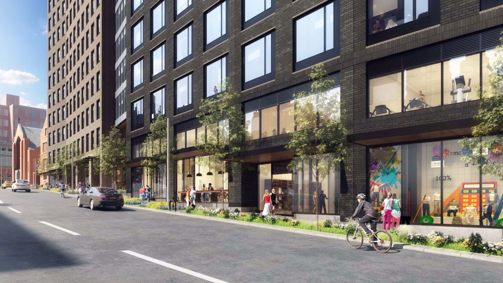 The project’s signature feature, The Brooklyn Cut, is a continuous greenspace corridor connecting 12th and Brooklyn Avenues and Buildings I and II. Designed for walk-and-talk meetings or a quick lunch break, the space invites movement and interaction, with multiple gathering areas, bench seating amid lush plantings, and large-volume spaces accented with warm wood walls and integrated lighting. Fronted by building lobbies and retail, The Brooklyn Cut creates a vibrant and welcoming circulation path that enhances connectivity throughout the campus.