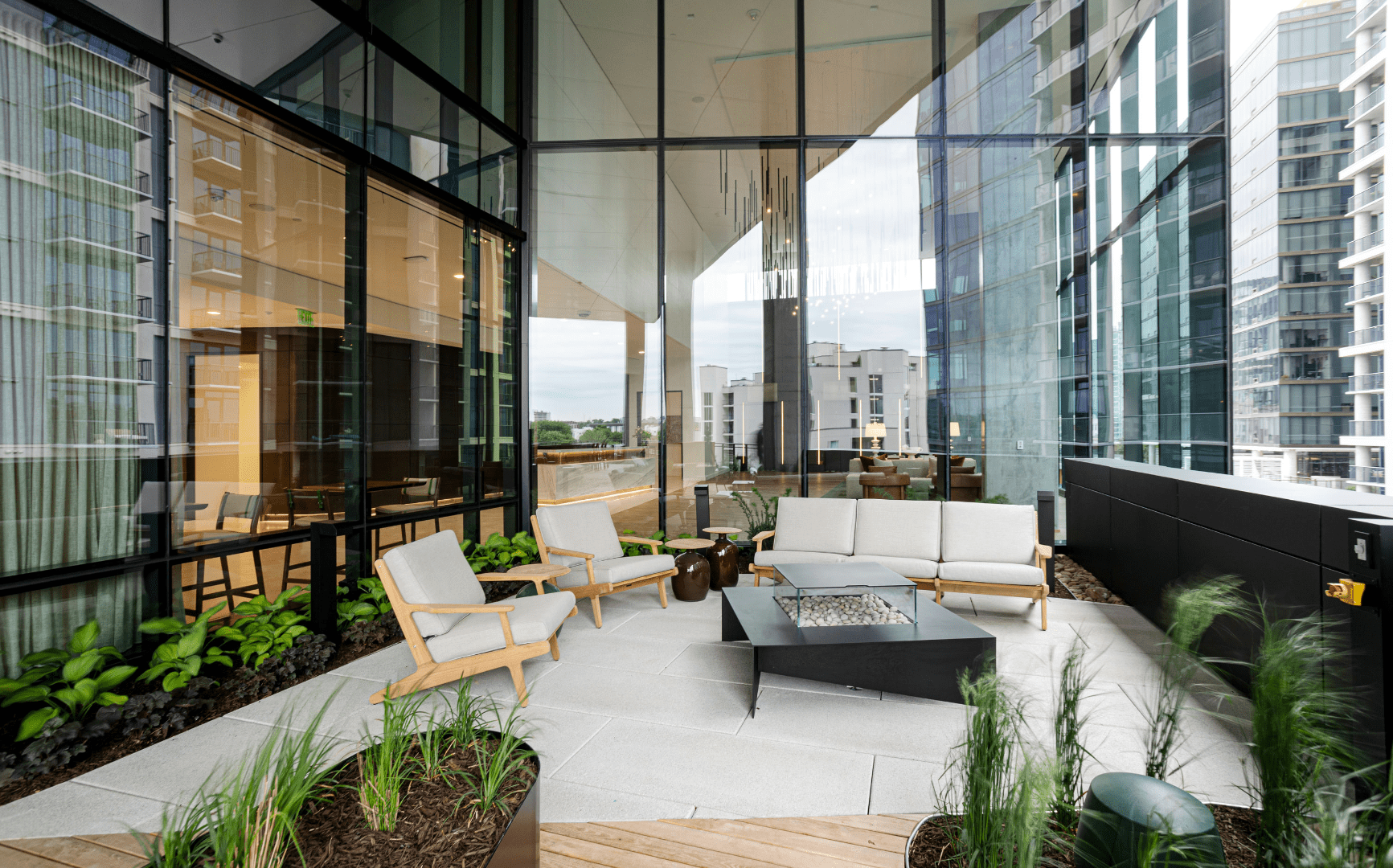 The Class-A office tower features 11,000 square feet of indoor and outdoor retail space, as well as a fitness center, tenant lounge and 8th floor sky lobby with expansive views of Midtown. As a LEED-certified building, The Moore Building is more energy and resource efficient and reduces stress on the environment.